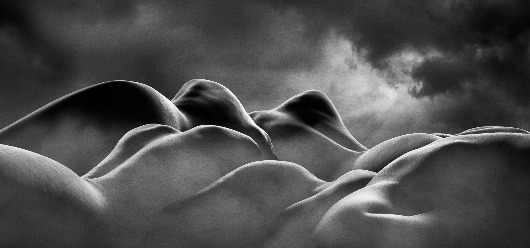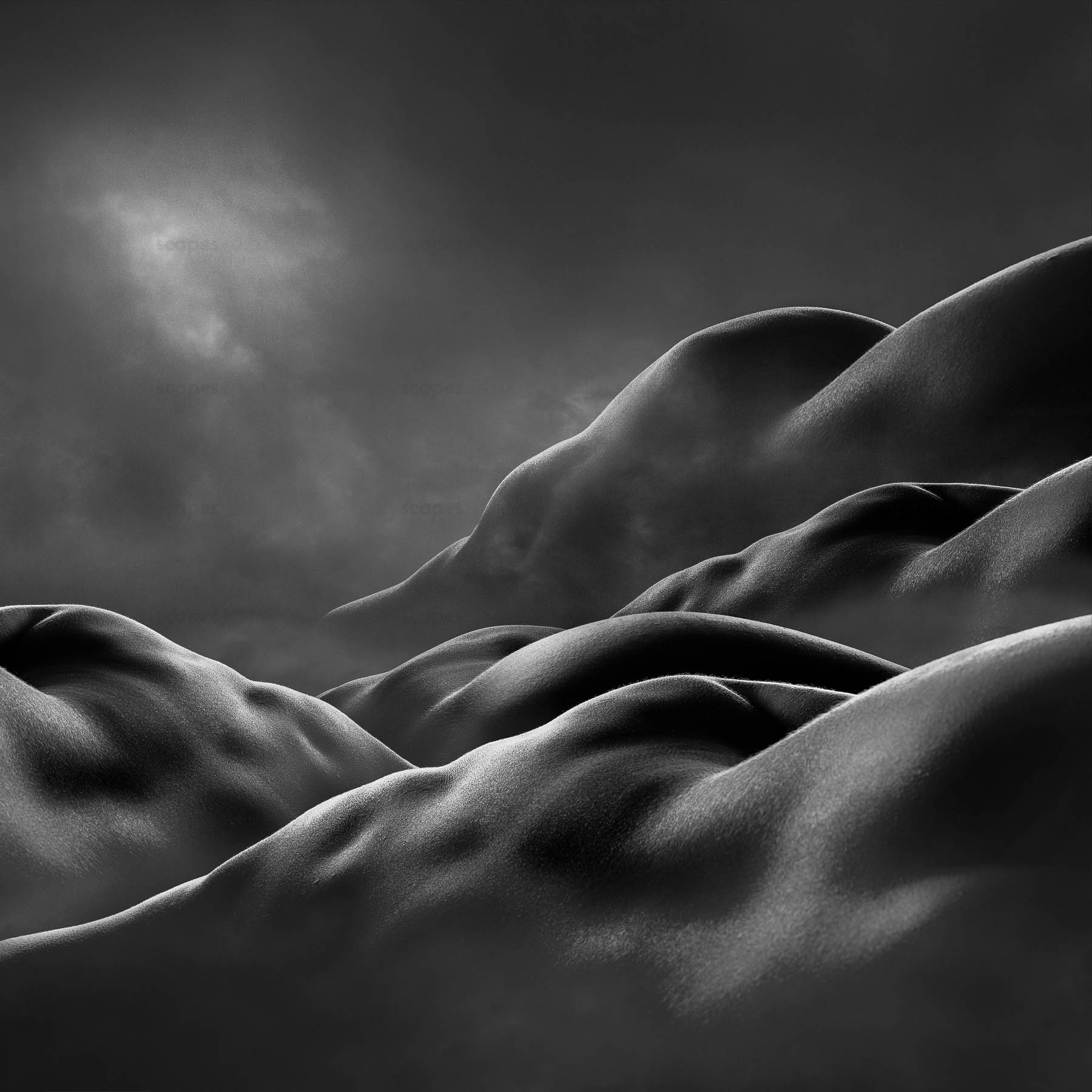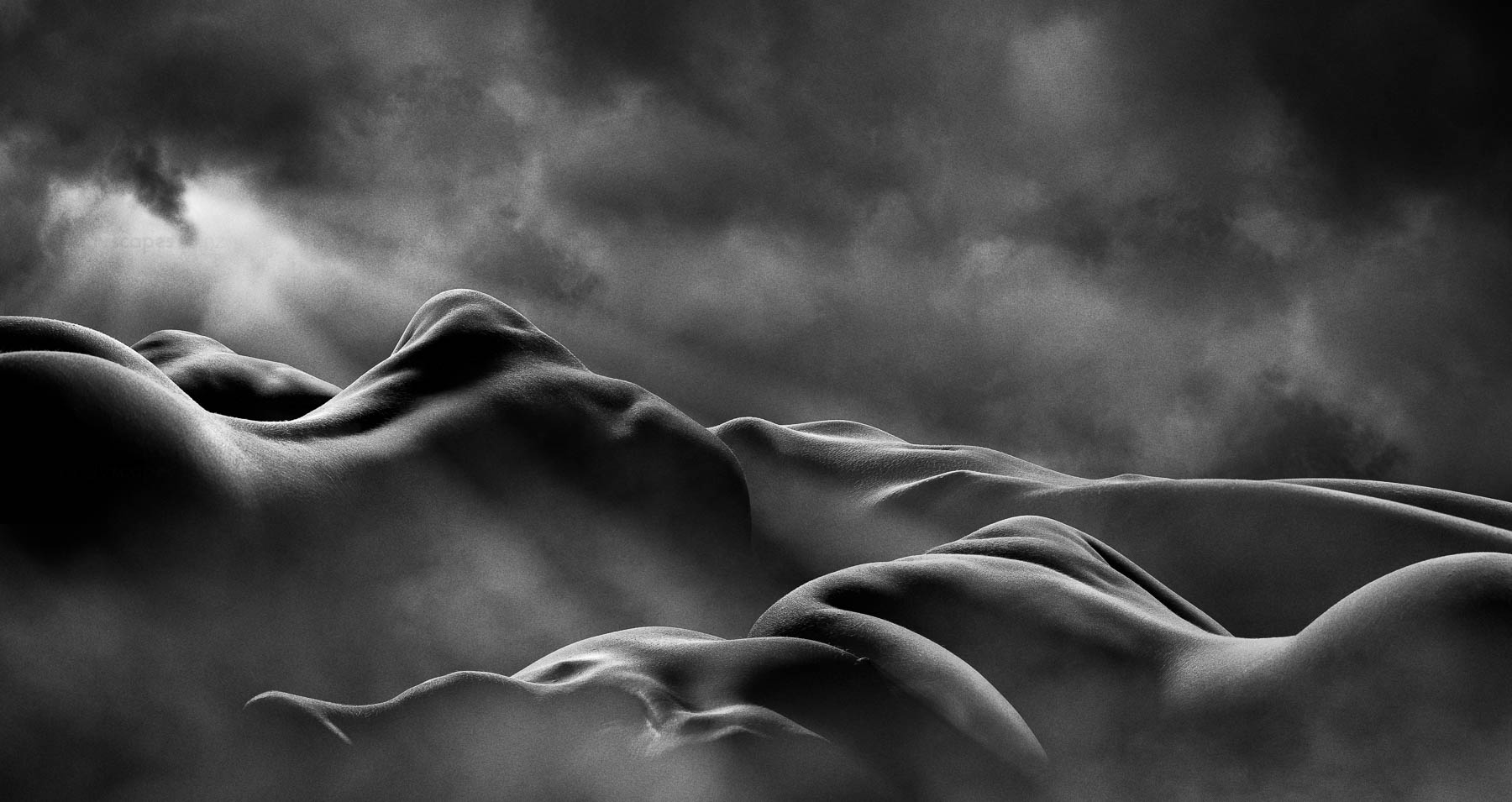 He captures the human body, creating fine art photographs that reflect his surroundings using the body’s nude form to emulate landscape. By using the purest aspect of the body in its nude form, body and skin evoke the texture of land with layers of ambiguity and mystery. This creates visual landscapes that lure the viewer into thinking they are looking at a far-off place, before drawing the eye closer. At this point, the viewer may realise that what they are looking at is made up of parts of the human body.