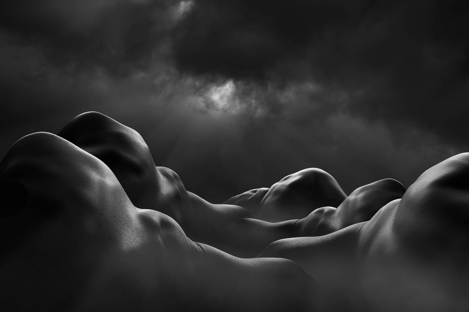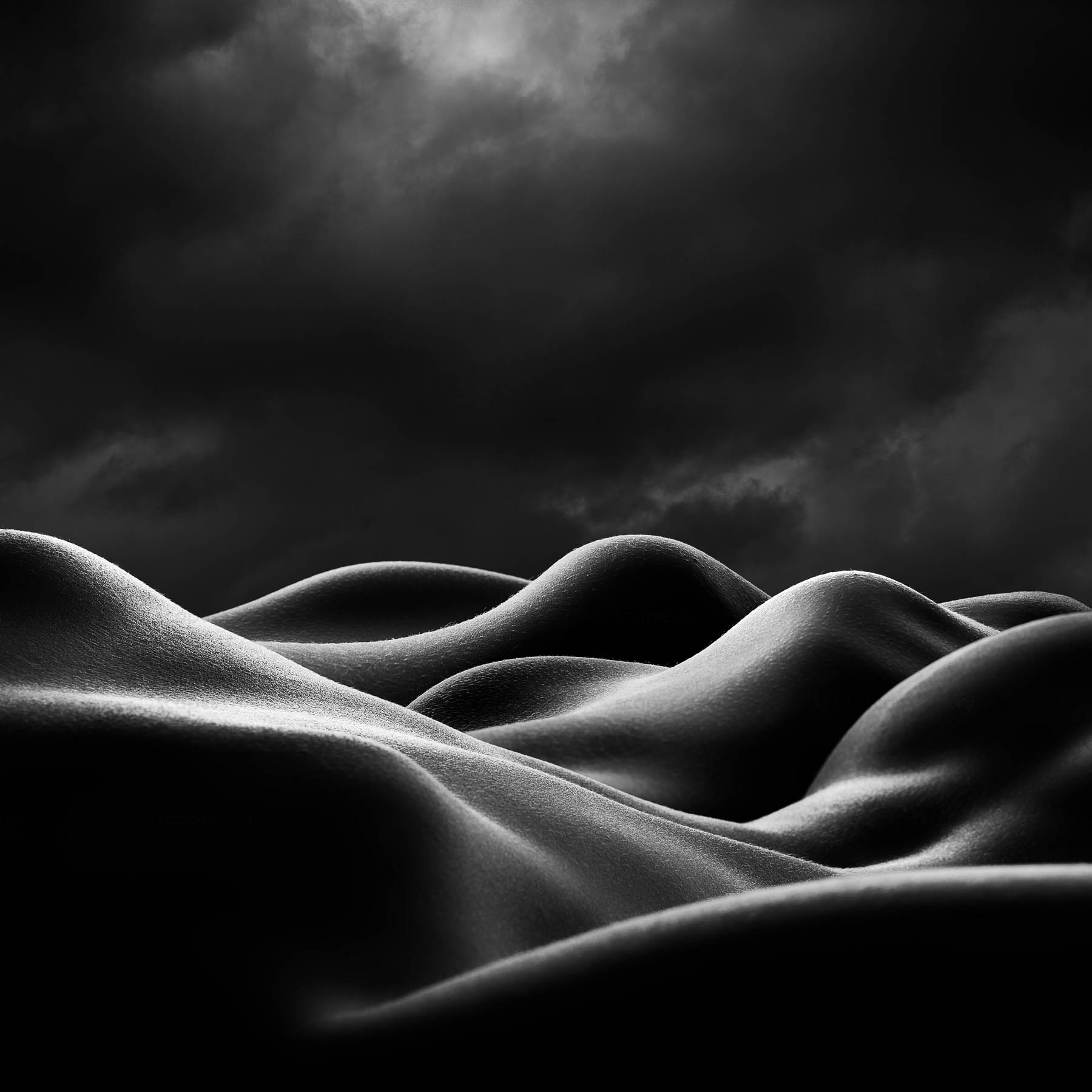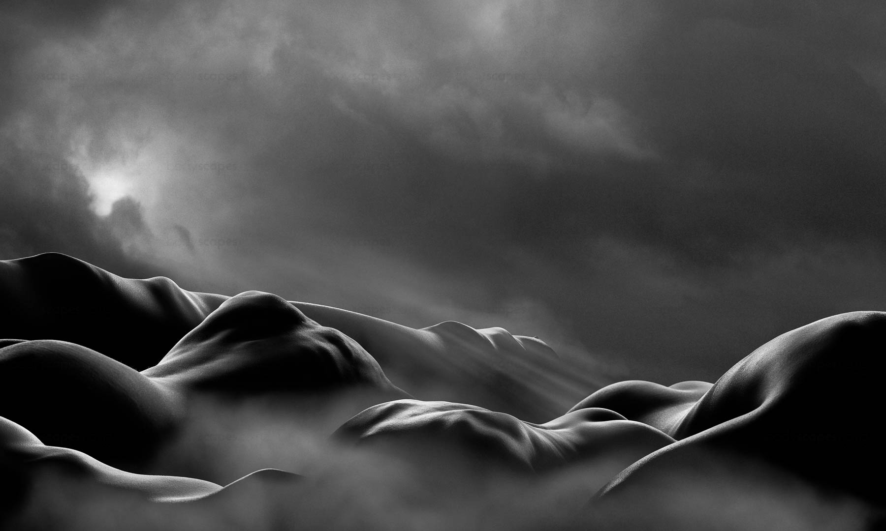 He captures the human body, creating fine art photographs that reflect his surroundings using the body’s nude form to emulate landscape. By using the purest aspect of the body in its nude form, body and skin evoke the texture of land with layers of ambiguity and mystery. This creates visual landscapes that lure the viewer into thinking they are looking at a far-off place, before drawing the eye closer. At this point, the viewer may realise that what they are looking at is made up of parts of the human body.