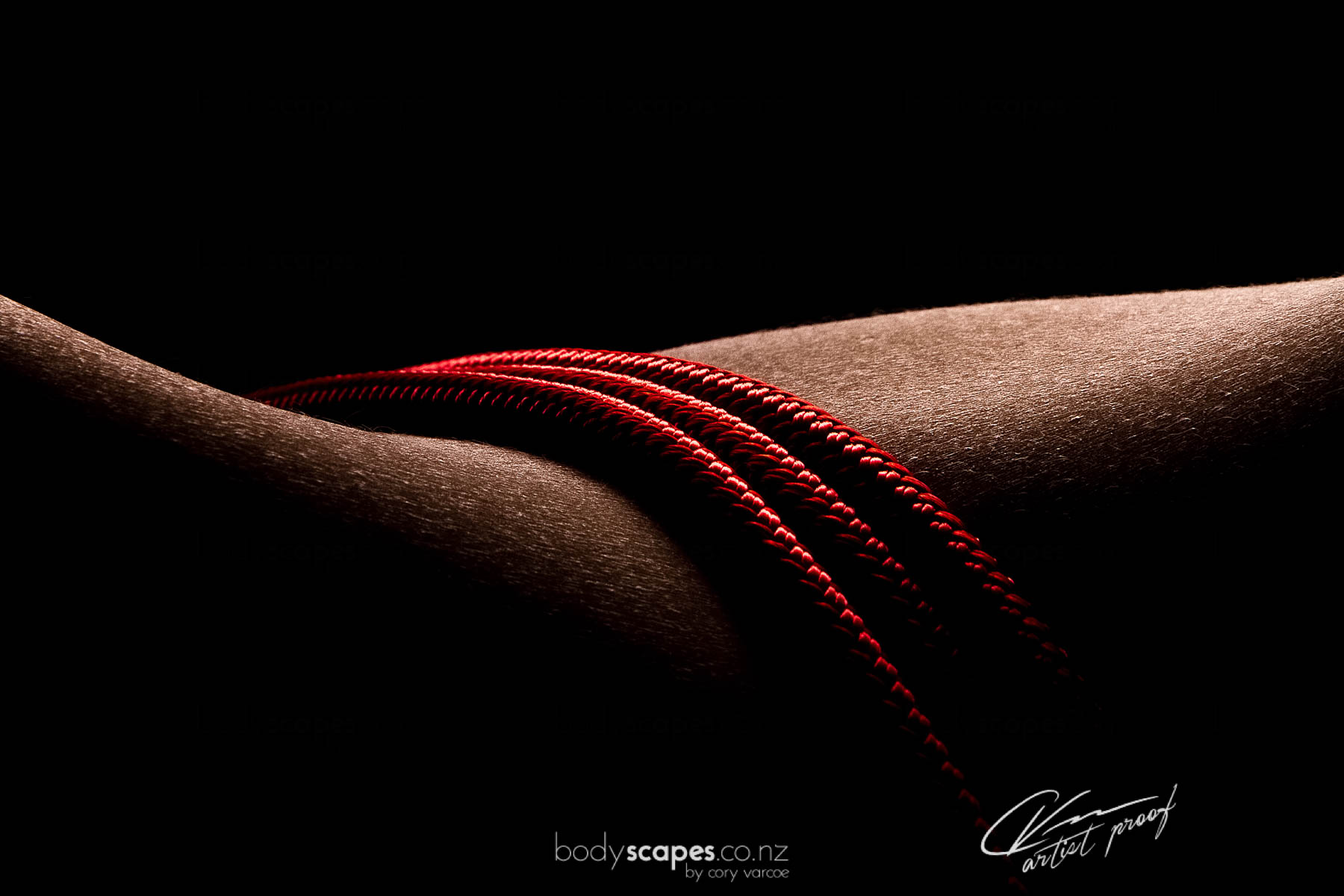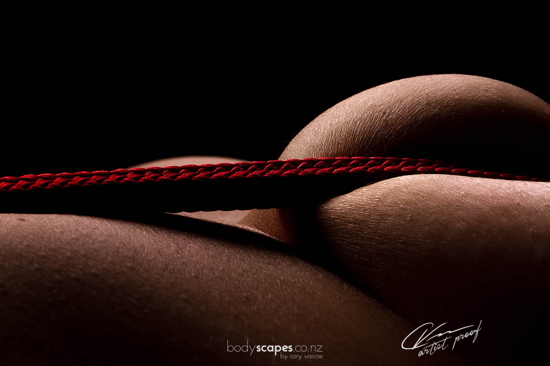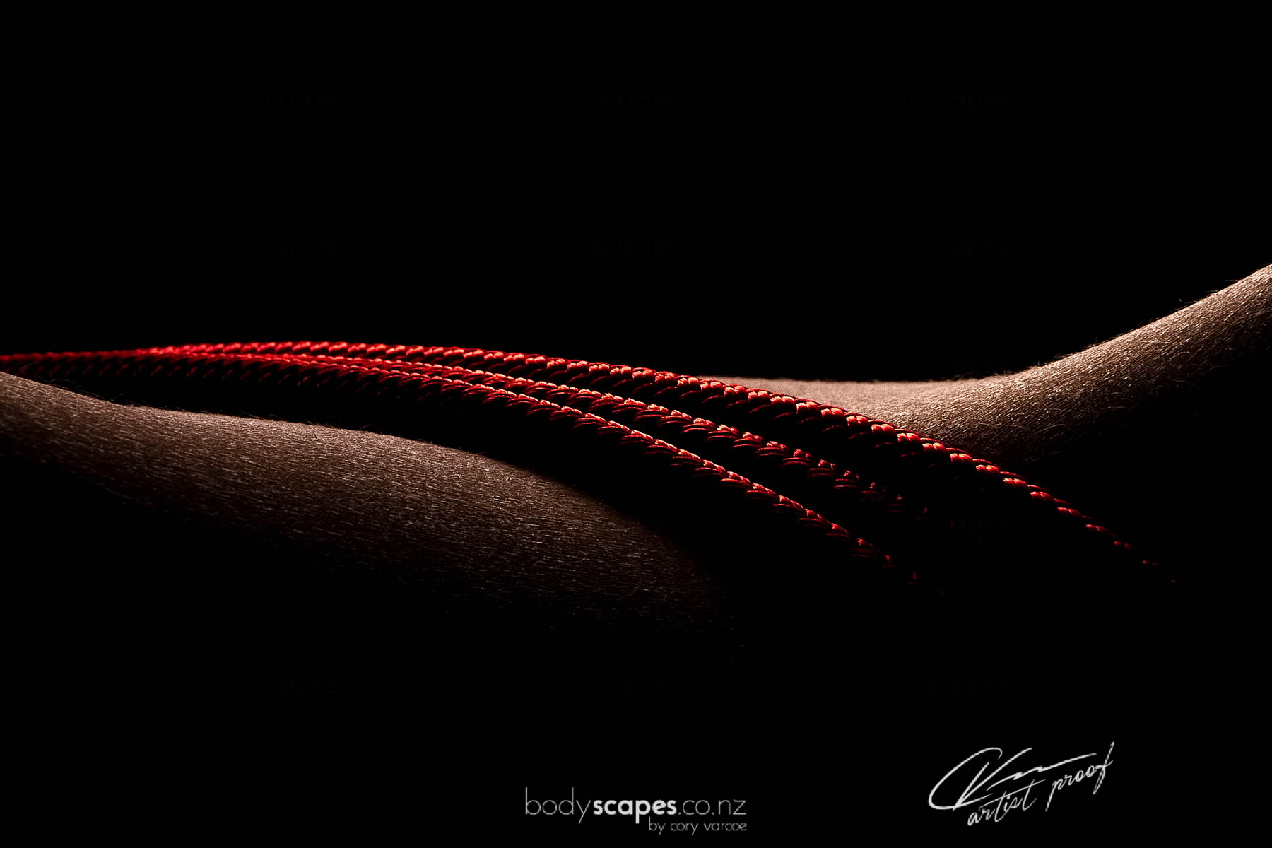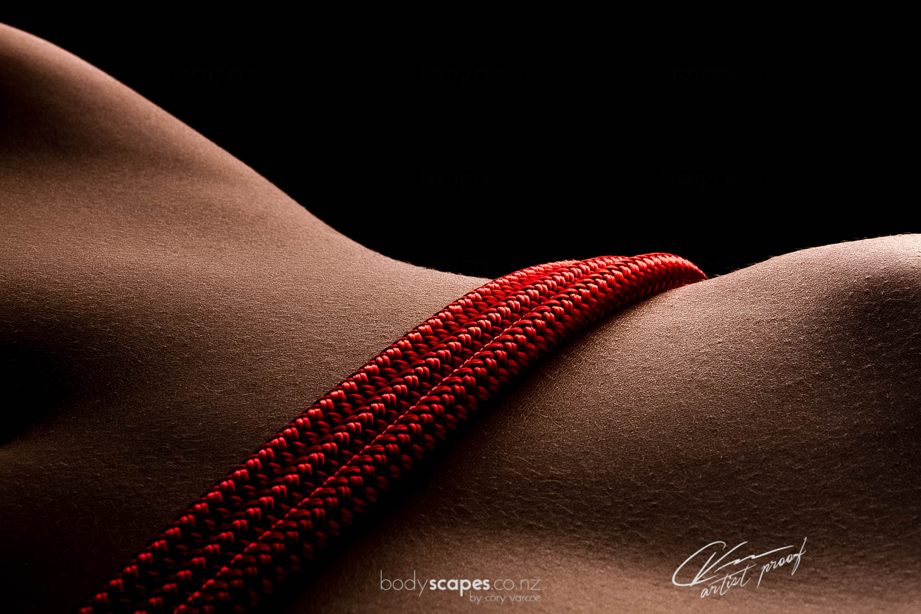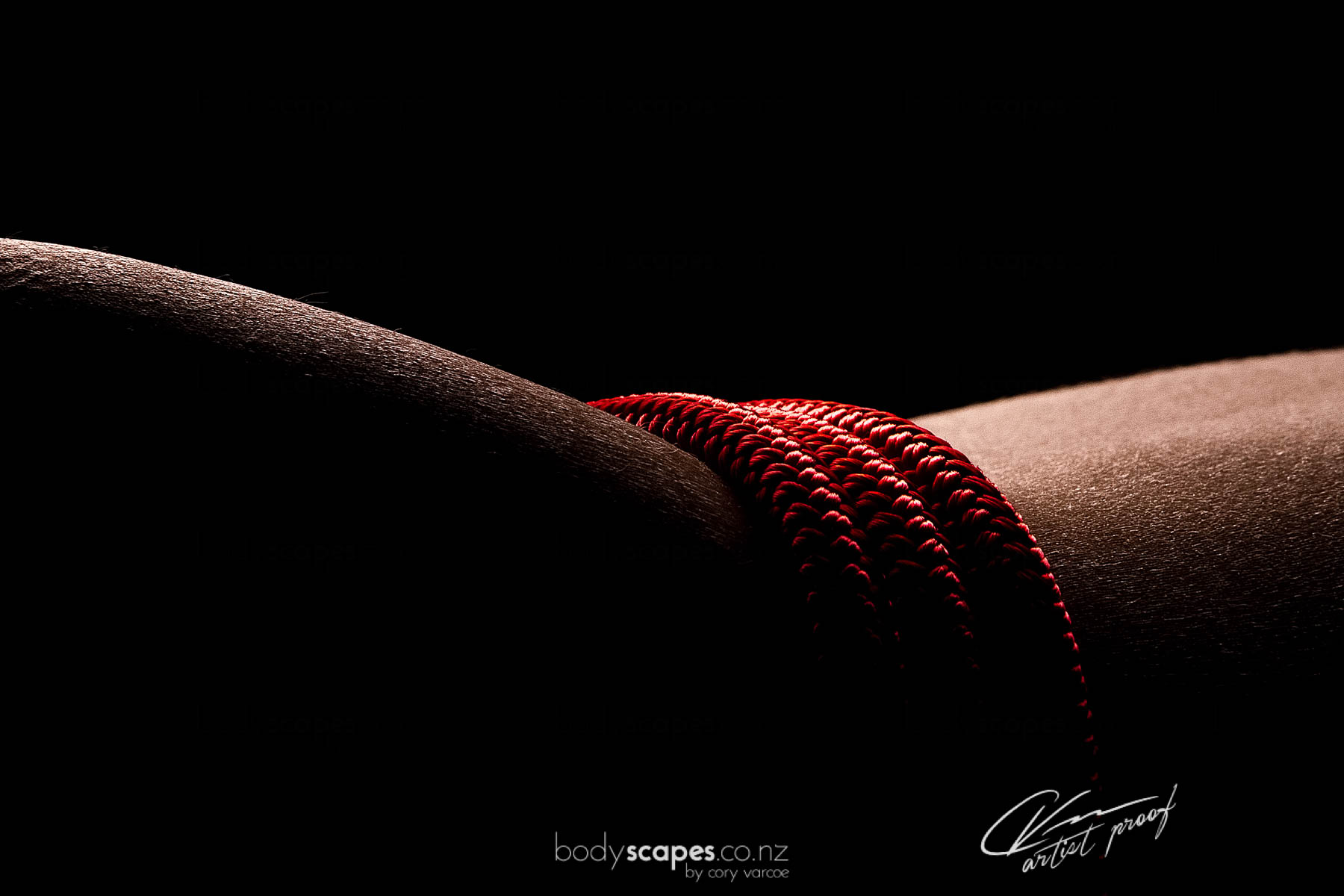 This series of photos uses strands of rope to contrast while complimenting the texture of skin, the rope passes over the skin in striking angles while impressing on it