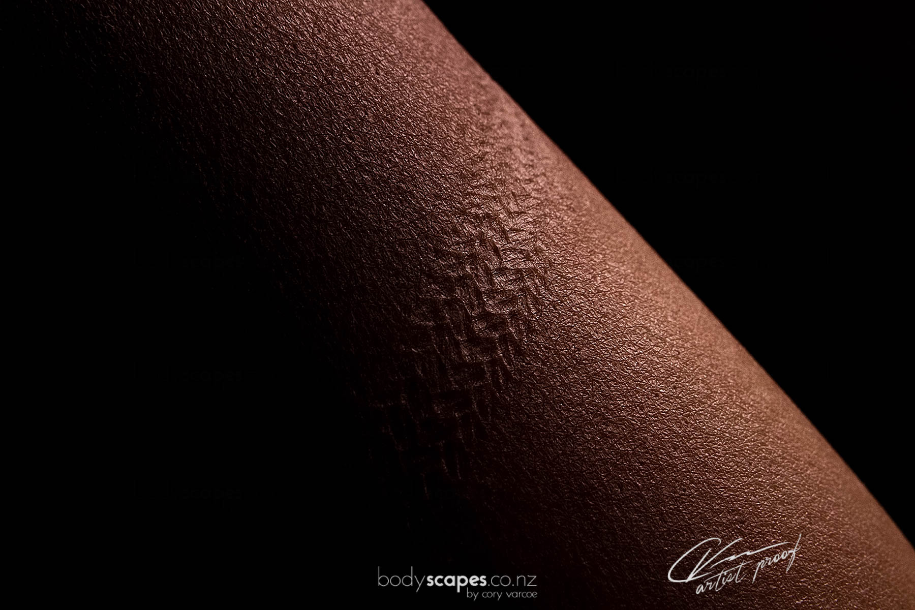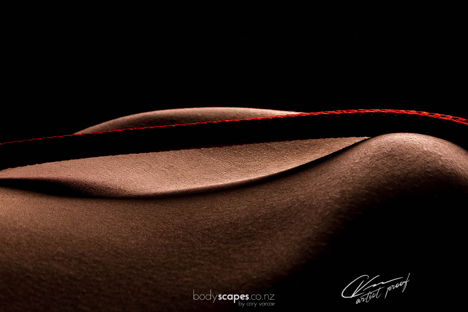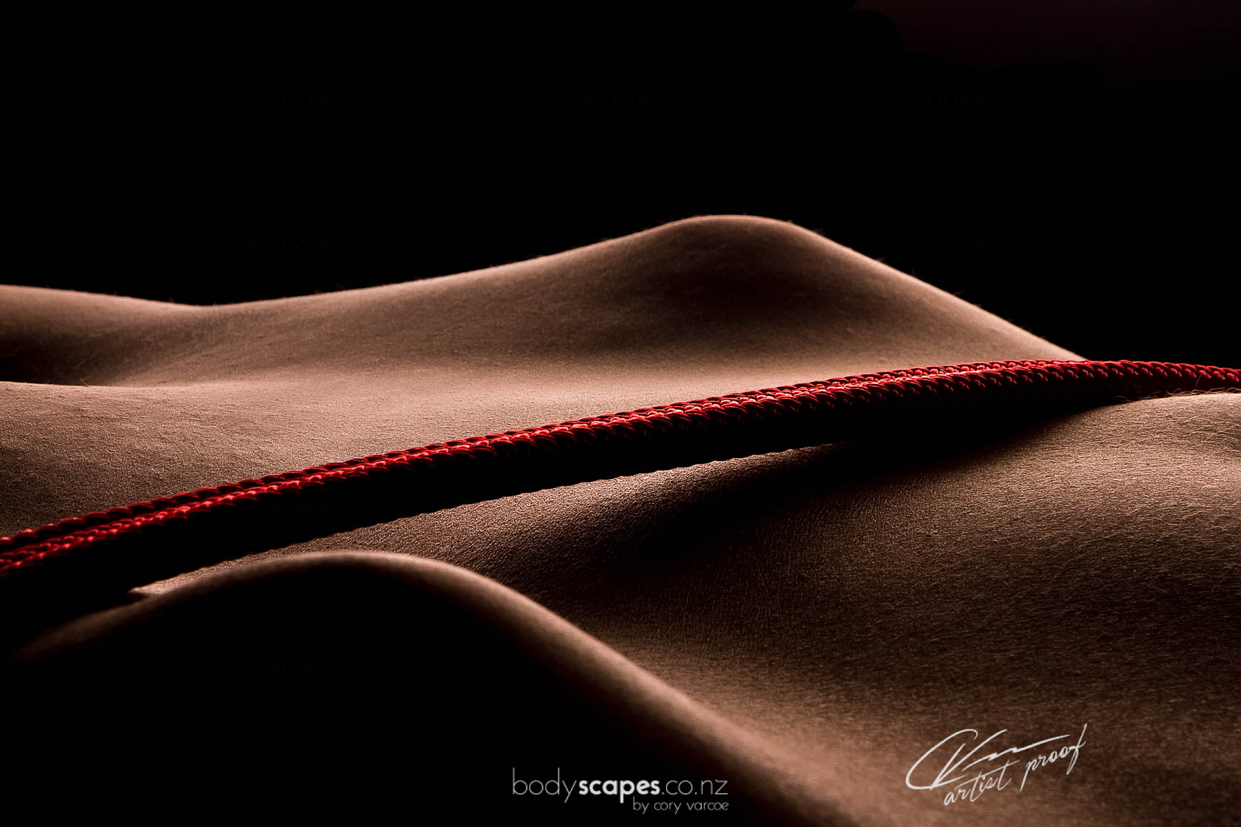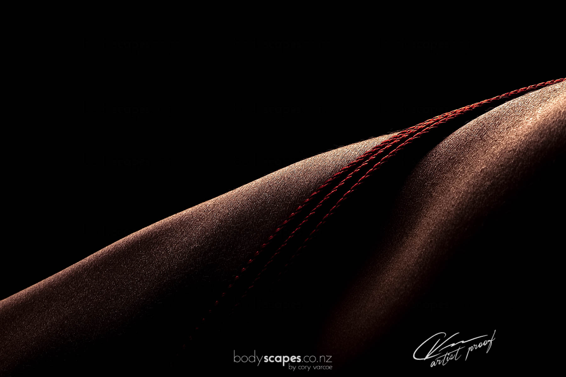 This series of photos uses strands of rope to contrast while complimenting the texture of skin, the rope passes over the skin in striking angles while impressing on it